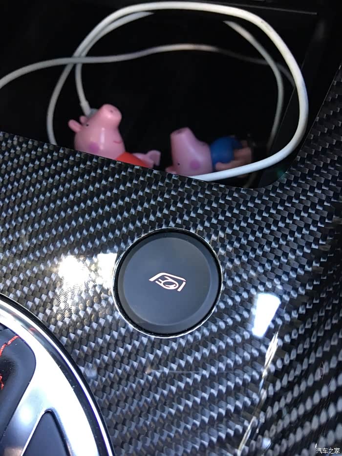 碳纤维中控部分,红黑搭配翻毛皮手感不错。