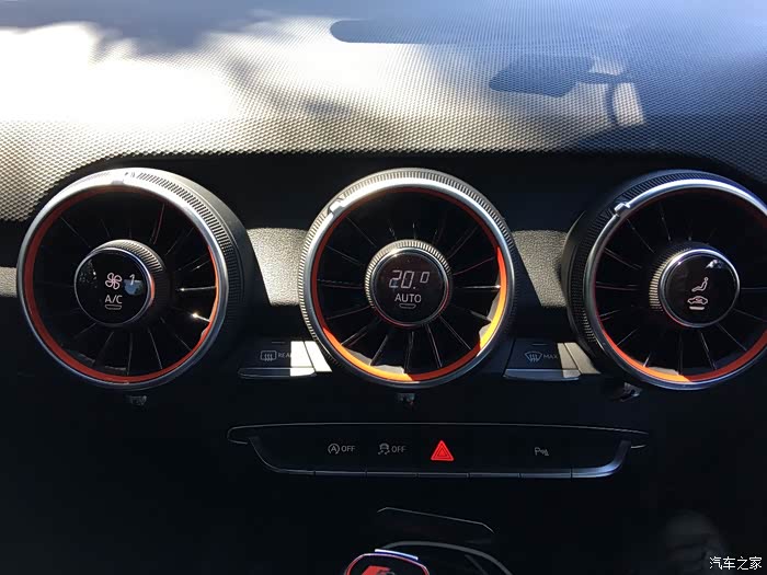 下面从左到右分别是启停控制键(上车先关),ESP稳定系统(弹射时候关闭),双闪(紧急情况),倒车雷达(前面+后面+倒车影像,以前老款车比如我开的A4如果有人或者物体靠近车是不会自动开启的,但是新款TT开始如果接近障碍物或者有物体靠近会自动开启雷达,这点相当不错)