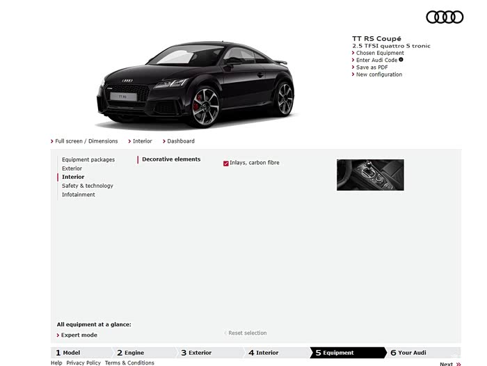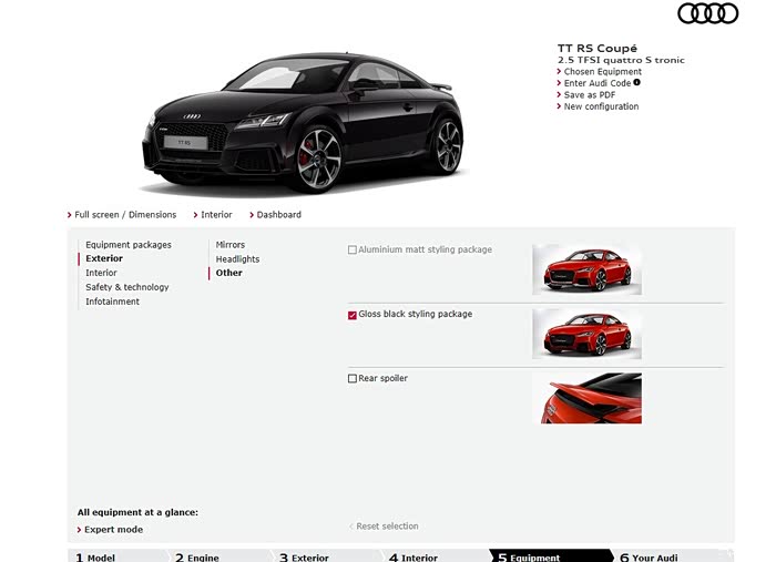 在欣赏高清大图前,我要先介绍下澳洲官网给予TTRS详细选配步骤