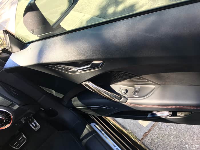 门子上也有红缝线和碳纤维把手,碳纤维也是必须要有的。