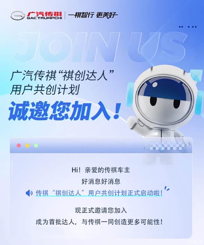 随着不断的发展,广汽传祺“祺创达人”用户共创计划试运行上线,我也有幸成为前期广汽传祺“祺创达人”的一员。能够成为祺创达人,让我感到无比的荣幸和自豪。这不仅是对我个人能力的认可,更是对我对传祺品牌热爱的回应。