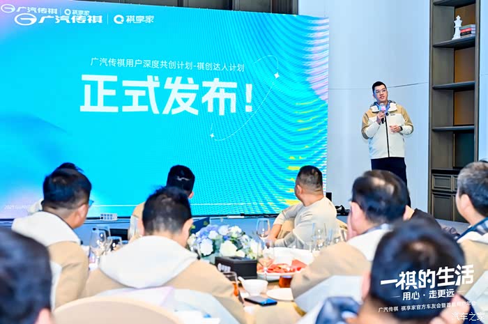同时,在首届用户年会上,广汽传祺领导刁部长宣布了“祺创达人”计划的正式发布,诚邀喜爱并认同传棋品牌价值观,具备一定创作力和影响力,同时愿意将传祺分享推荐给更多人的传祺车主加入我们,与传棋共玩、共创、共成长!