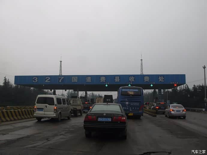 经过327国道费县收费站,车辆通行缓慢