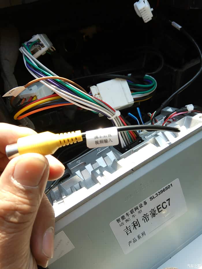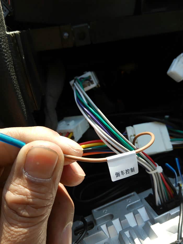 新车机大屏虽然是专车专用,但是还是需要破线接倒车触发线,按照标签的标示找到倒车触发线接上就ok拉啦。