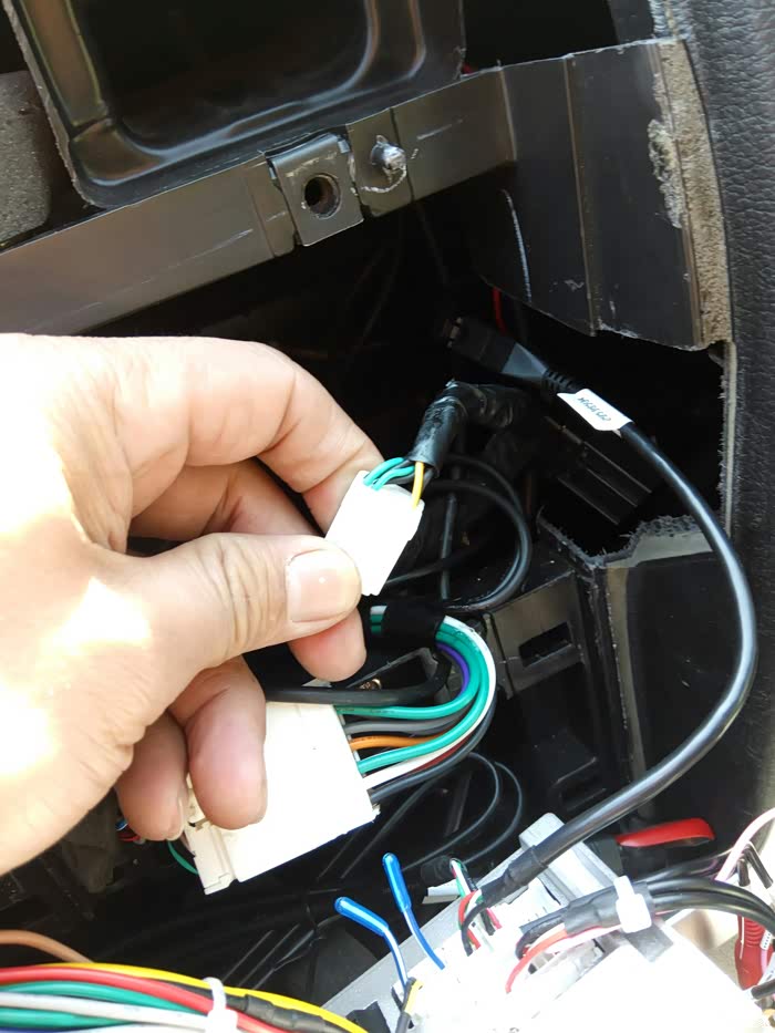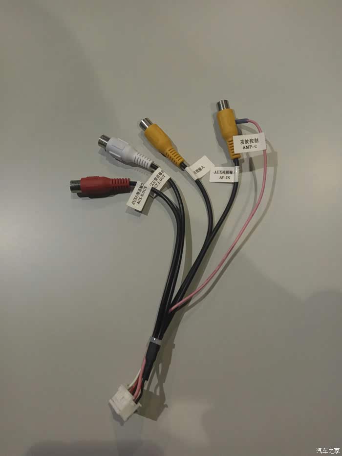 新车机给配的是莲花插头跟一套倒车后视线加摄像头,我懒,为了省事,直接用的原车的延长线跟摄像头,这样就需要破线了,莲花头剪断,跟原车插头上的黄色跟黑色线接起来,后视就搞好了