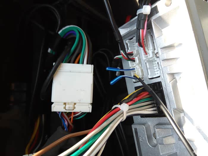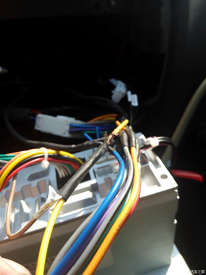 做好防护,电工胶布,加阻燃热缩管,多一层防护,多一层安全,因为改过右侧盲区监控,中间加了一套公母插头,所以跟原车的倒车触发线的颜色不一样