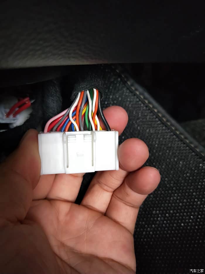 在我们的左脚上部找到和升窗器同样的插头向后拉拿下来和升窗器的插头对插,再把升窗器的插头插回原车进行一个转换无损对插。