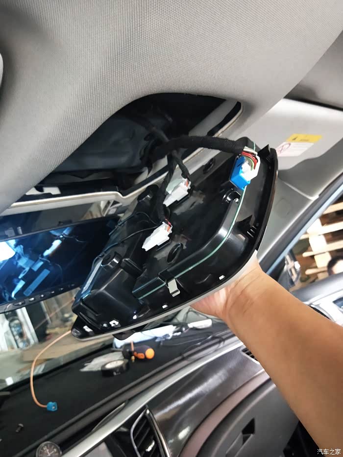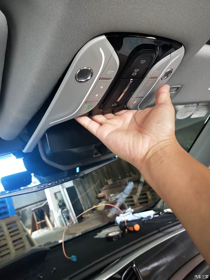 手抓住眼镜盒子内部往下拉,就可以把天窗控制键的总成给拿下来了。
