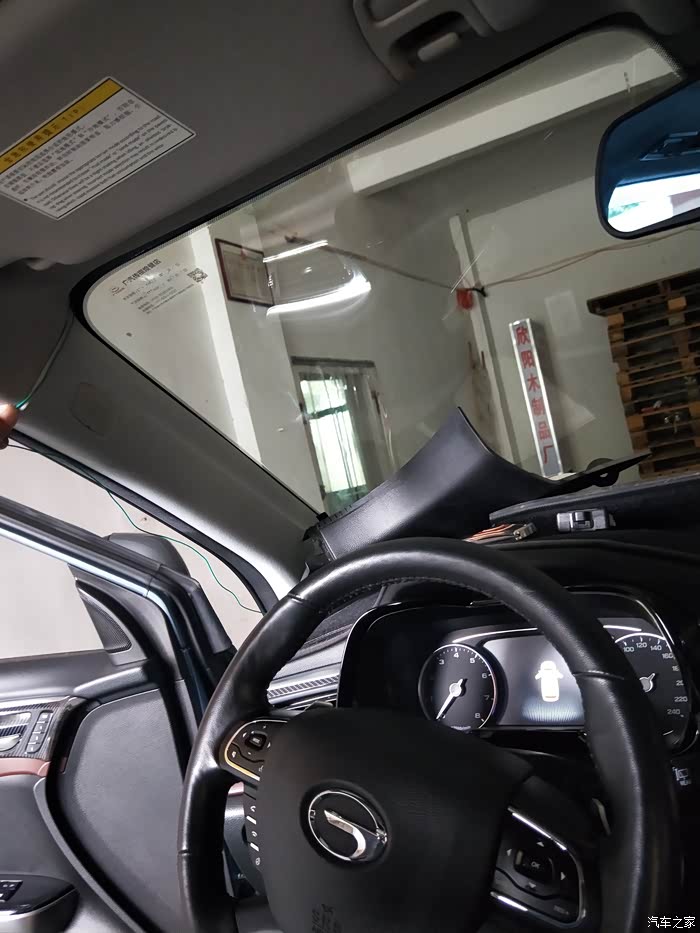 在左A柱线插旁边的铁柱上找一个空余的地方,把升窗器黏贴在这里,安装步骤就算完成了。