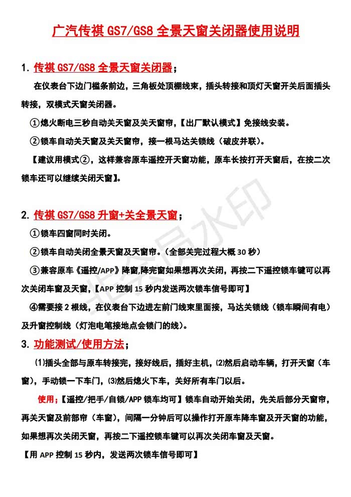 完美解决GS8遥控钥匙一键关闭全景天窗!
