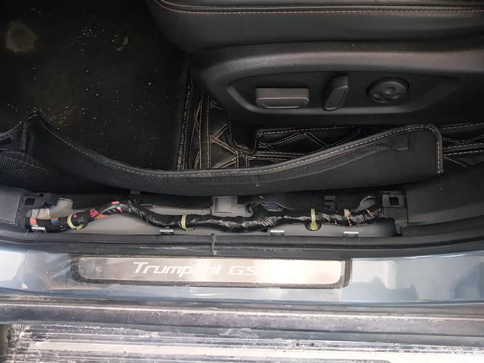主驾驶侧的门槛条没有螺丝直接扣起来,车辆所有的塑胶类固定扣都需要用韧力拆下来,才不至于疲劳折损。
