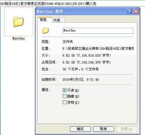 下载完成后进行分卷压缩,首先建立一个“NaviOne”空文件夹,然后将压缩包解压出的文件全部拷贝到“NaviOne”空文件夹内即可,得出NaviOne文件夹,大小为6.62GB。完成后将此文件夹拷贝进事先准备好的U盘中等待安装。
