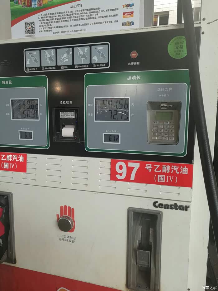 第一次加满油,奥迪a6l的油箱真大呀,能加450块钱油,我的EC8只能加300块钱。
