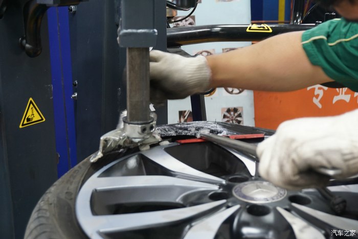 拆轮胎,前面也说过了,防爆胎因为胎壁厚,所以比一般的轮胎难拆,师傅抹了很多很多这种润滑油,2个人合力才拆下来。