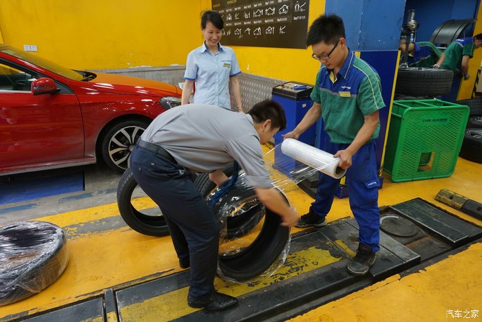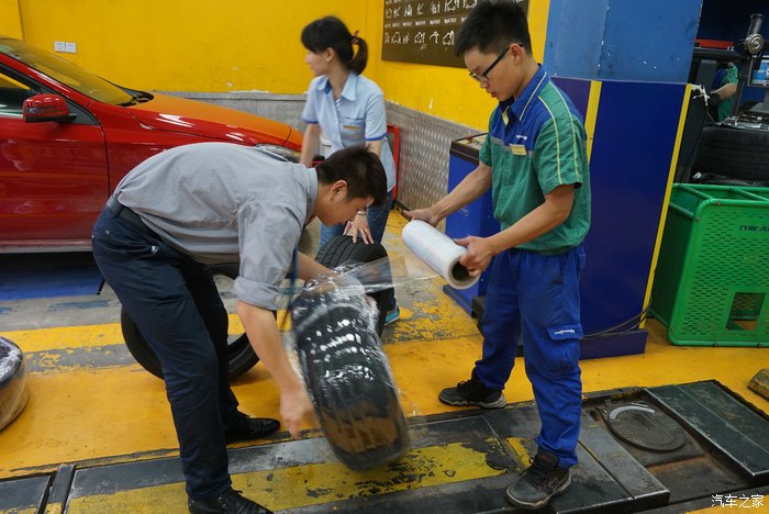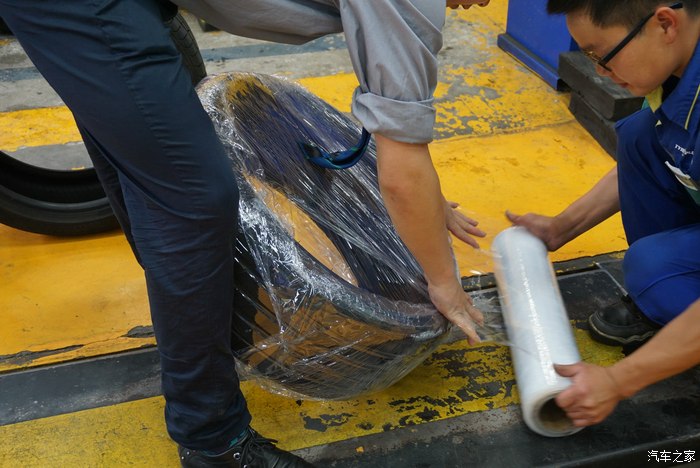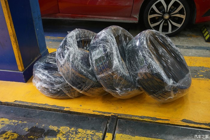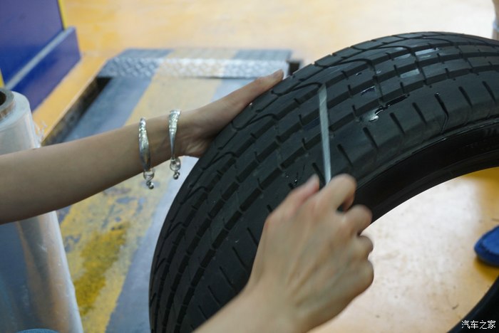 超大号保鲜膜打包。这个服务很好,我觉得很多店都可以推广一下,方便用户将旧轮胎带回家,又不会弄脏自己的座椅。
