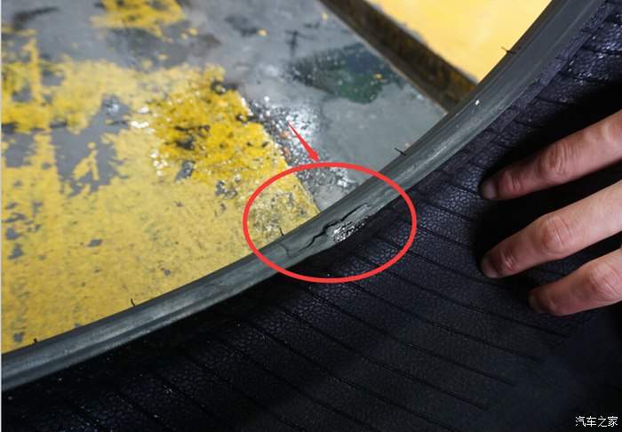 这条轮胎上有个深深的裂缝,用工具比划了一下,大约有近1厘米的深度呢。
