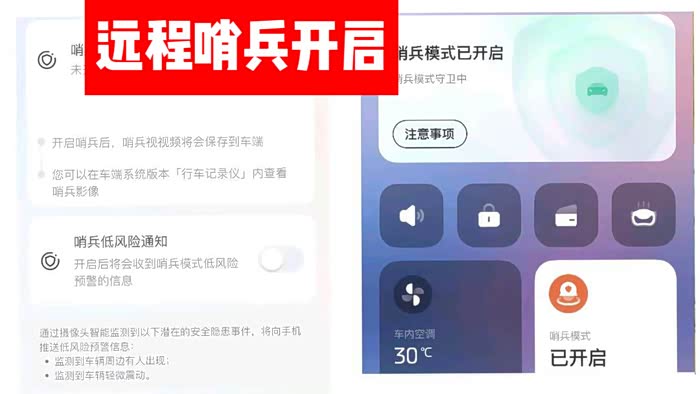 No3:手机远程开关哨兵 App新增一键开关功能。用户可以根据自身的实际需求和不同场景,在自己想要的时间开启“哨兵”模式,忘记开哨兵再也不用下楼去车里开哨兵了