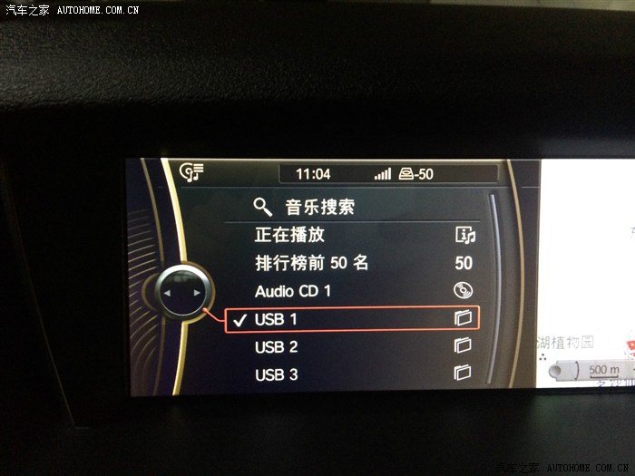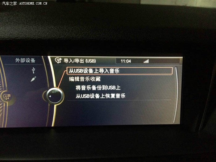 首先插入U盘,听说有车友把U盘不小心插到外面这个洞洞了,掉进去还不容易弄出来吧,所以不能见了洞就插,这样很危险。插好U盘按idrive上面的MENU键,选择CD/多媒体,按压idrive旋钮