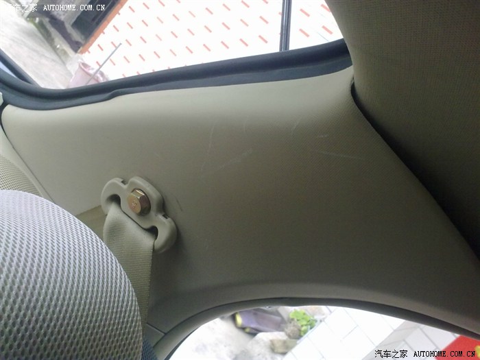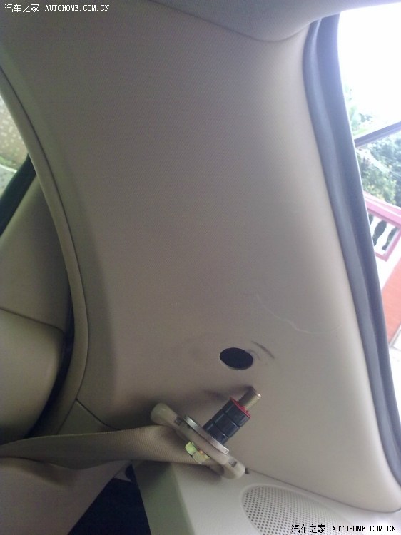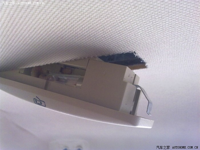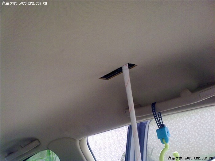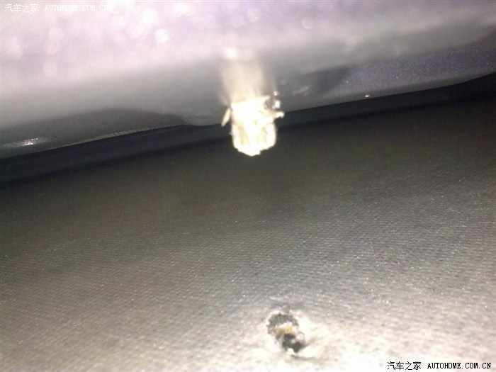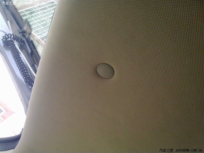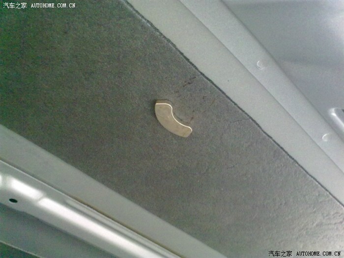 从车里边看,一个洞洞,这里看到车顶的隔热棉还是隔音棉的。