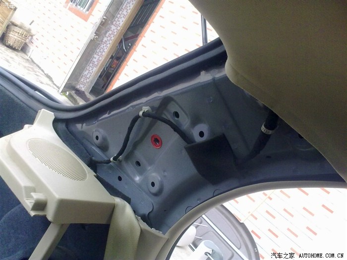 下图这里看出,从后面顶棚看进去,其实我们的早期风云2三箱车是有预留车顶灯的,而且还有天窗接线头啊,配置不少也。要是有意思的话可以自己搞个天窗。