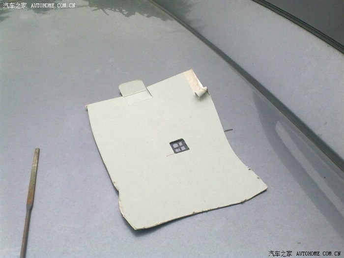 回来说说打洞吧,下面这个图是定好位了,这里要用到手电钻,为防止划花车顶漆面,还是加上一些纸板。