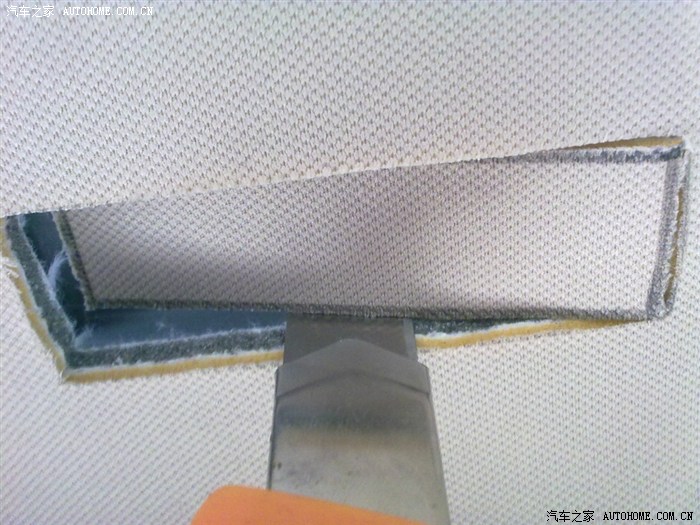 这里顺便把后排车顶灯也取个孔,也是量好尺寸,这里切的时候一定要用好的新刀,而且要一刀下,这样就很好切的了,基本没什么问题的,只是切直来。