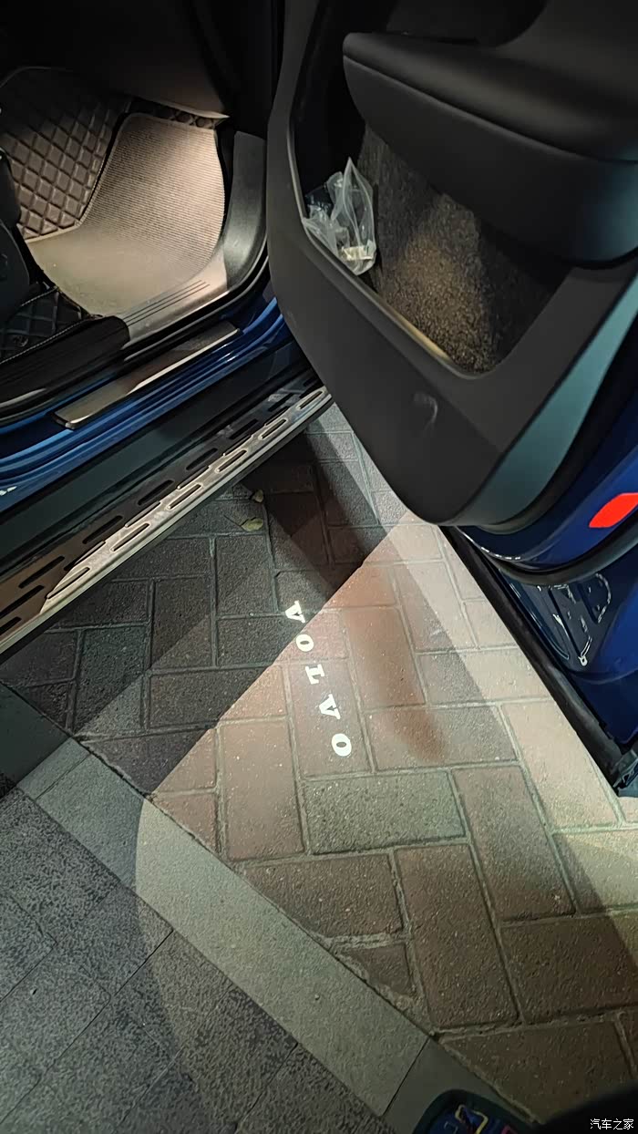 6.迎宾灯:当夜幕降临,开启车门时,底部的迎宾灯不仅照亮了脚下的路,投射出的沃尔沃标志也增添了一份仪式感,这一切只花费了450元(不含安装费)。