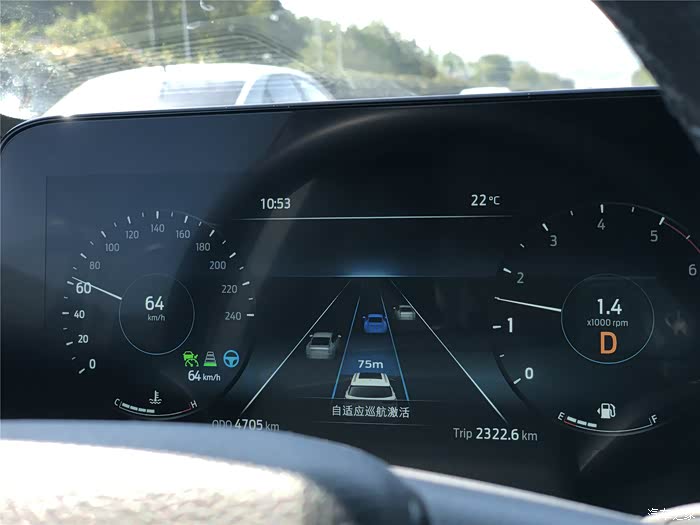 听着歌聊着天,索性就打开ACC自适应巡航吧,不用踩油门和刹车挺省事。