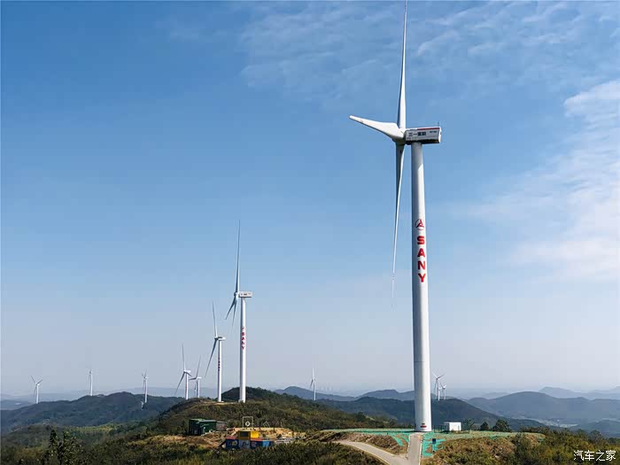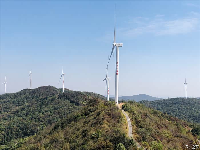 每一座山头都矗立有风力发电设备,特别壮观。