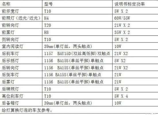这个是网上查询的乐乐各种灯泡规格一览表,来源网络,仅供大家参考,其中大灯的型号已经确认无误