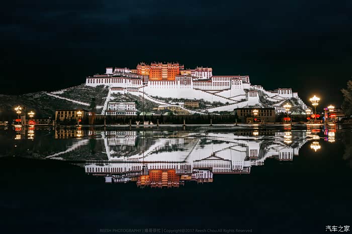 降低相机机位拍摄布达拉宫倒影。