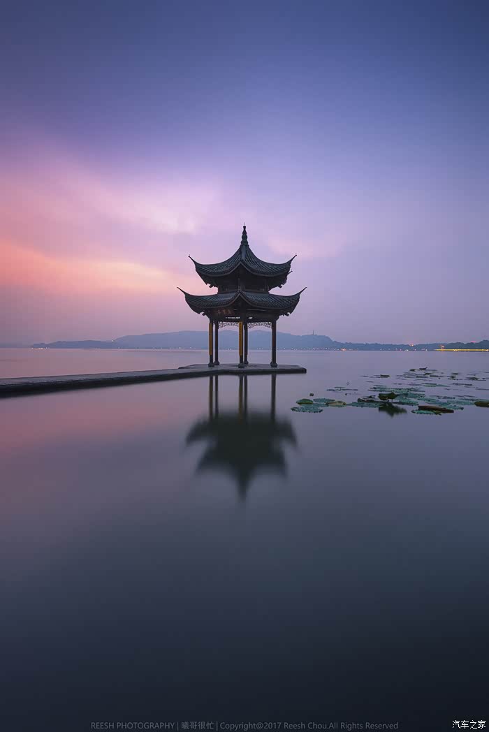 湖面倒映着,