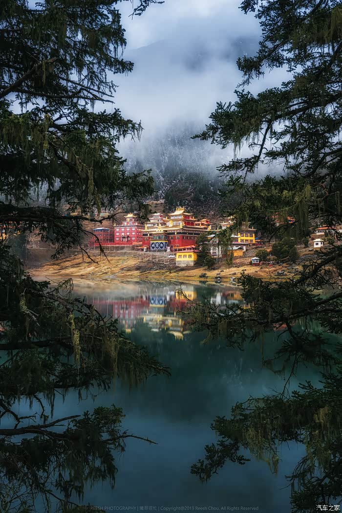将远处的措卡寺框于其中。