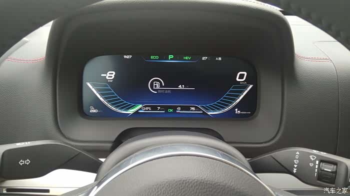 3.如果没电了,想保持良好的驾驶品质和动力,可以原地油转电,具体方法为,停车,hev模式,挂p档,踩油门。半踩油门为4kw,踩到底是8kw。油门阻力不大,不需要费神去保持,建议踩到底,因为4kw时,需要2.3l油,8kw只要4l油。具体如图,这种方法比怠速充电效率要高。