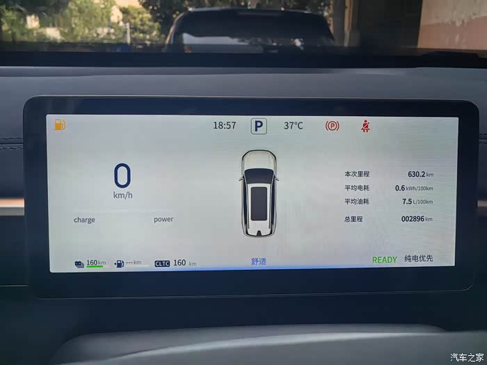 1、日常通勤表现:每天上下班往返约15公里,纯电模式下表现良好。现在每天气温37℃以上,我都是提前10分钟开启远程空调,上车就走很便捷,电耗在17~19度/百公里之间,不开空调则能降至14~15度/百公里。我驾驶风格属于偏激进,不出远门的话也能做到一周一充,相当满意。