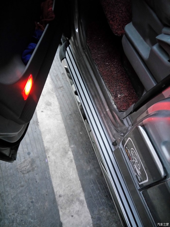 一来家里老人和小孩上车也方便一点,二来还可以保护侧边的钣金。朋友中有二个就是没看到石头搞变形中门那里,造成中门不好关!