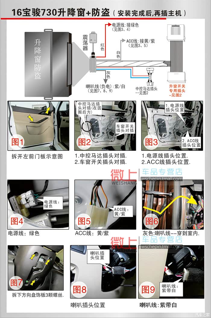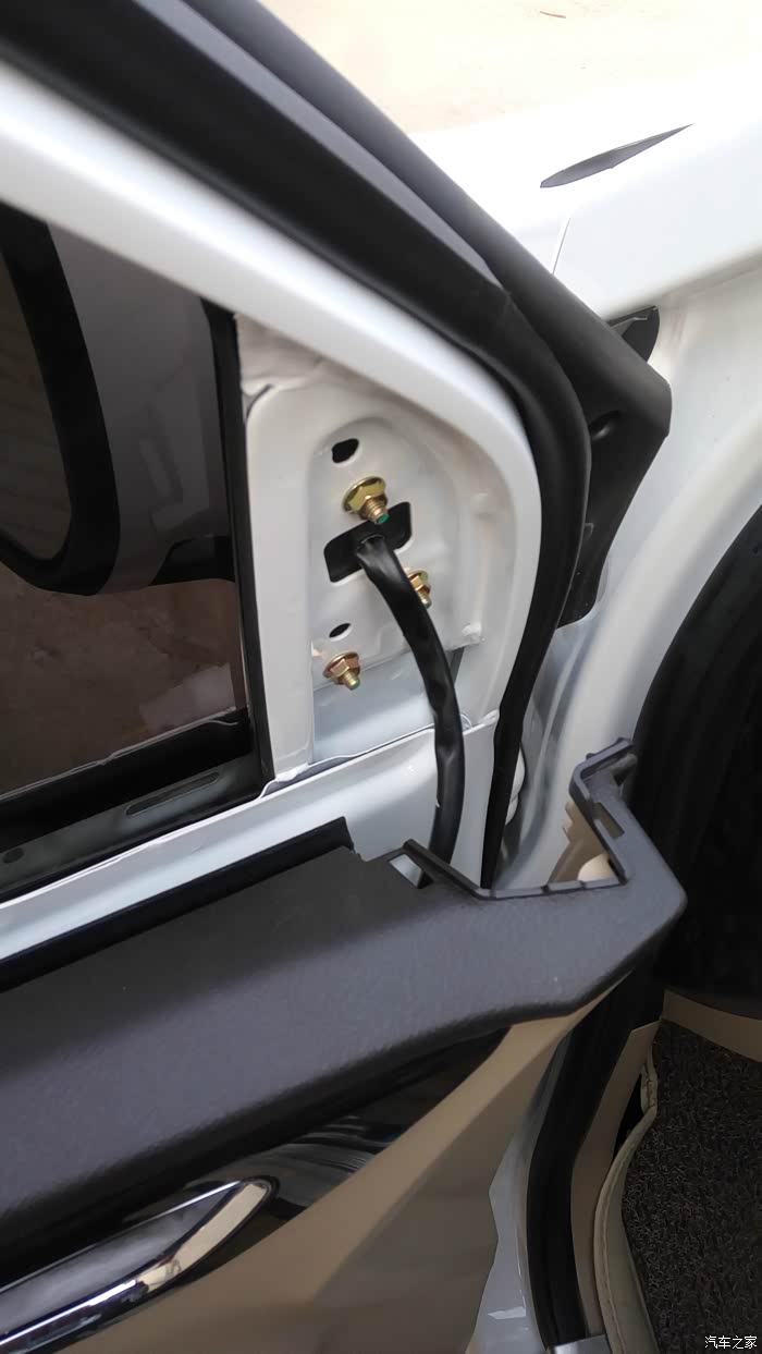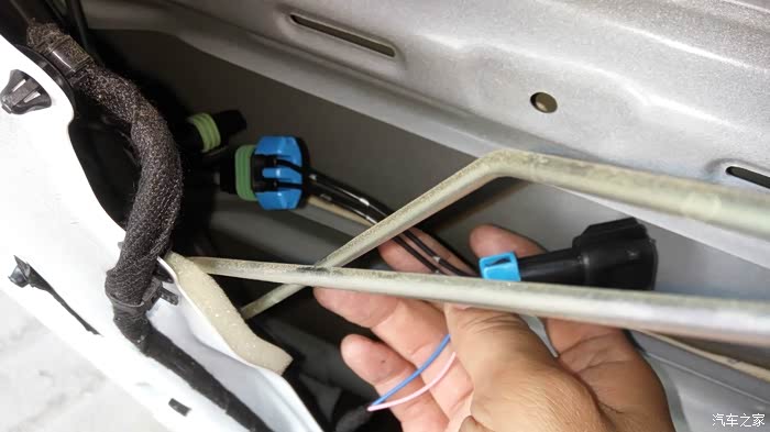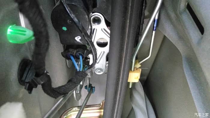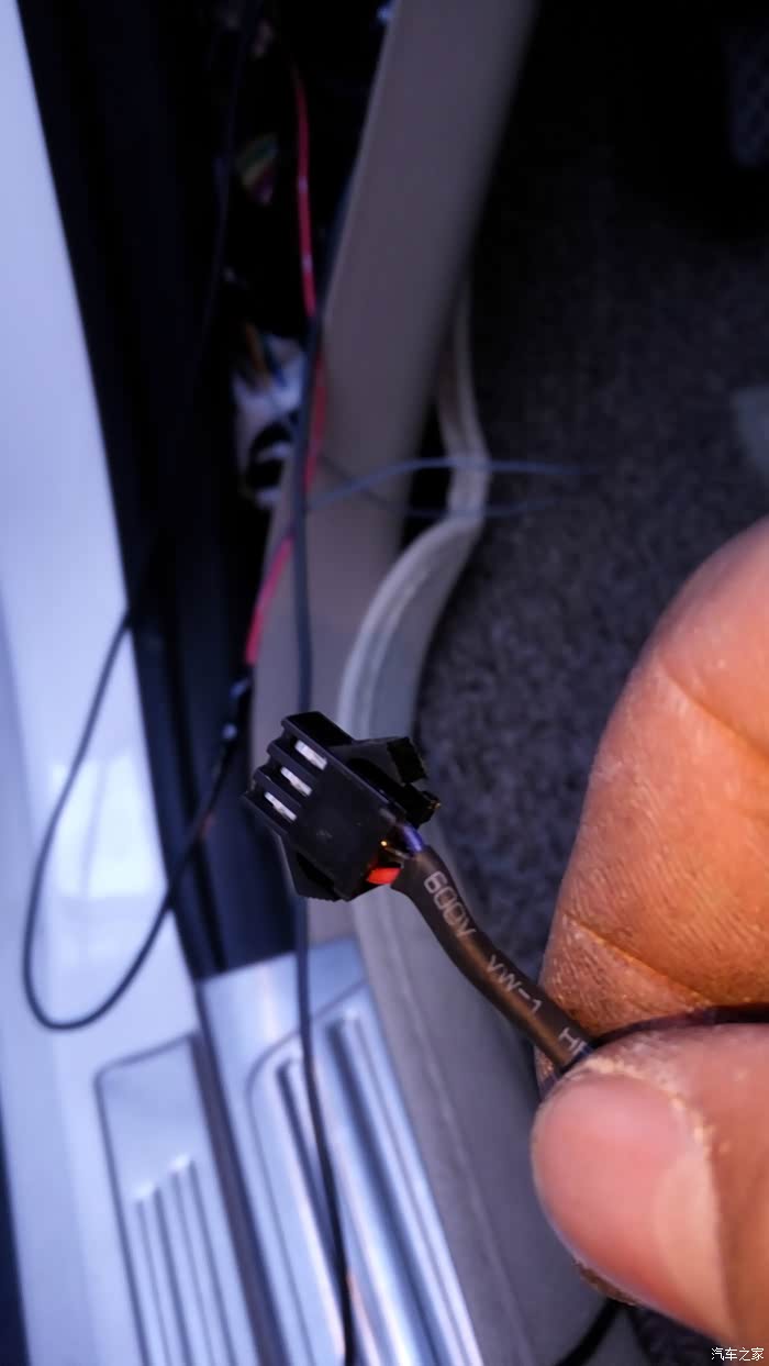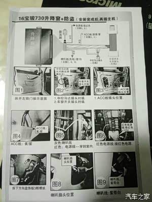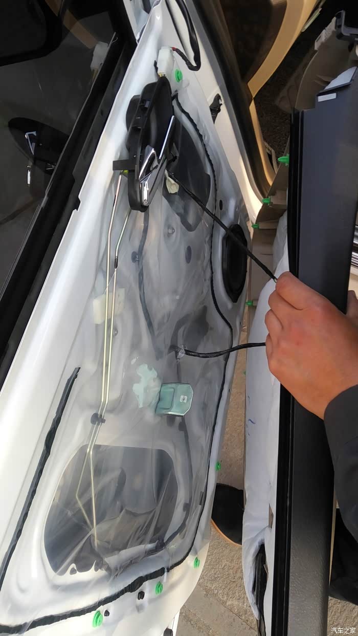 虎了吧唧的把线穿进去接好全部都装好非常完美的一次安装。可是试机不行,把我郁闷坏了,然后又拆开仔细的检查,都没问题。最后从卖家那里才知道16款电源线取电不用穿室内,用门里的绿线取电就可以。
