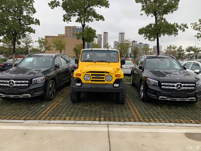 这是在仓库和奔驰GLB对比,212显得比较窄,装上轮眉看效果应该会好点