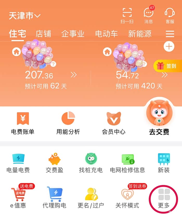 于是赶紧去小区物业问了下,果然现在可以安装充电桩了。于是马上开具了物业证明,在“网上国网”APP提交了申请,具体操作流程如下:APP首页打开“更多”,在“办电”项目找到“充电桩接电”,