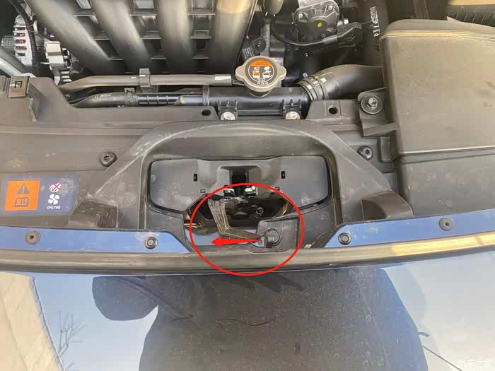 车内打开引擎盖锁,还要记得二级锁,手伸进缝隙往左掰,就能开启。