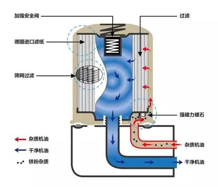 这个是属于课外读物,我没忍住要解释一下为什么我建议每次都更换滤芯。讲的太复杂我相信大家也没兴趣,我就讲一点,当筛网和滤纸脏到一定程度,机油的流速下降,但是发动机的需求还在,如果突然的激烈驾驶给了全油门,但是机油被脏的滤网挡住来不及流过去,这个时候顶部的加强安全阀就打开了,不经过筛网滤纸直接进入发动机。