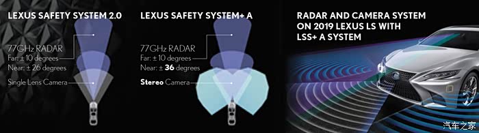 现在在美国标配车型已经开始搭载LSS+2.0。但是我在看媒体评测的时候发现,在国内即便是LS500h 行政版搭载的主动安全系统也仅仅就是个LSS+的水平。雷克萨斯在国内的主动安全系统可以说是备受批判。ACC做不到全速域,车道保持画龙,主动刹车在速度高于50公里每小时也刹不住。问题就在于LSS+这套系统实在是太老旧了。整个丰田家族全部车系中,主动安全可以和德系车匹敌的有且仅有LSS+A系统。而这套系统只有LS车型海外版本的顶配才有。简要概括一下,+A系统比+2.0系统多出的功能:可和抬头显示联动的预碰撞提醒。紧急制动下,在车道内主动躲避行人系统。前方侧向车辆通过提醒。和高速打转向灯后车辆可主动变换车道功能。从硬件来说+A系统的传感器更多,雷达覆盖范围更广。导致的结果就是不仅仅功能更全面,就算与2.0重叠的功能表现也好太多。