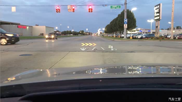 在前面有车辆横向通过的的时候抬头显示会有流动的箭头提醒。这个功能在驶出道路两侧有违章停车的小区门口时可以非常有效的避免碰撞。