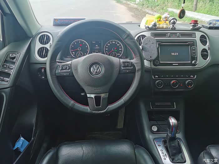来个主驾驶细节,可以看到,我的档把子已经改了,这是我车上为数不多的改装之一,手握处增加了两条红线,而且换成了真皮,当时可是花了大价钱的,方向盘又包了层真皮,保护原来的真皮,因为之前不包套,原车的真皮让我弄秃噜皮了,哈哈