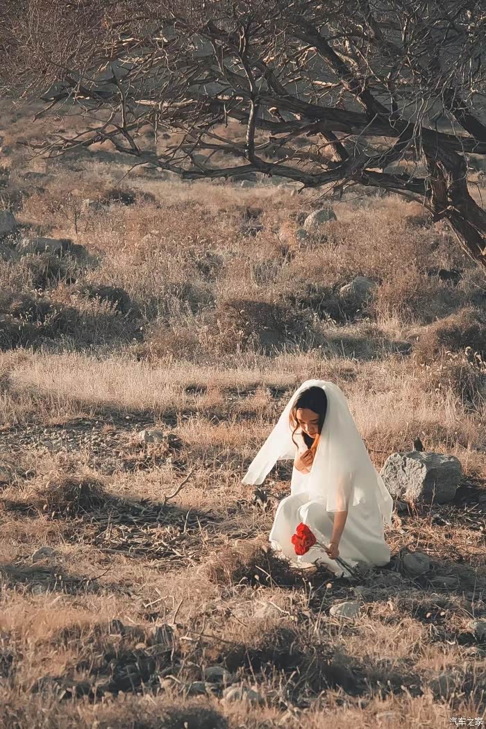 一个人在这里拍写真,感受这冬天的荒凉,你看一大片就有一种荒凉的感觉,可能是冬天来了,冬天的荒凉的话,体现出来了这样独特的孤独的感觉。