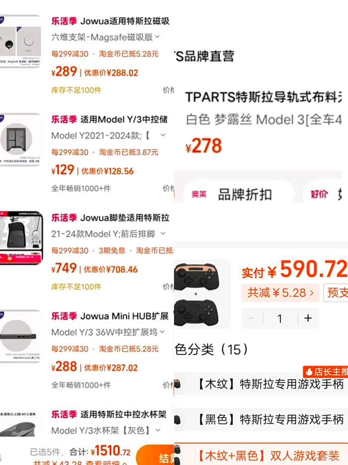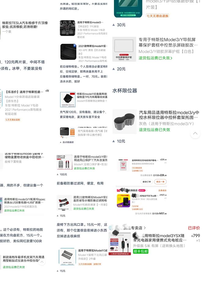 特斯拉内饰简单,被同行取笑是“毛坯房”。市场上关于特斯拉的配件之多之杂,应该是所有汽车品牌之最。所以我也买了一大堆。