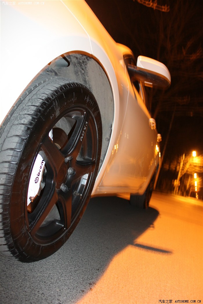 卡钳:说到卡钳,大家第一反应肯定是。喷成红色,红色运动。我想这是大部分改装车主的想法,我喜欢与众不同,我不希望我的卡钳开出去跟大街上是个改装车的颜色都一样,所以,我选择了卡钳罩,鲍鱼卡钳罩,本来是没有白色的,是买回来之后,自己和朋友买来漆水,调试,最终成了现在的,磨砂亚光白。必须磨砂,哈哈(这要感谢我的兄弟)