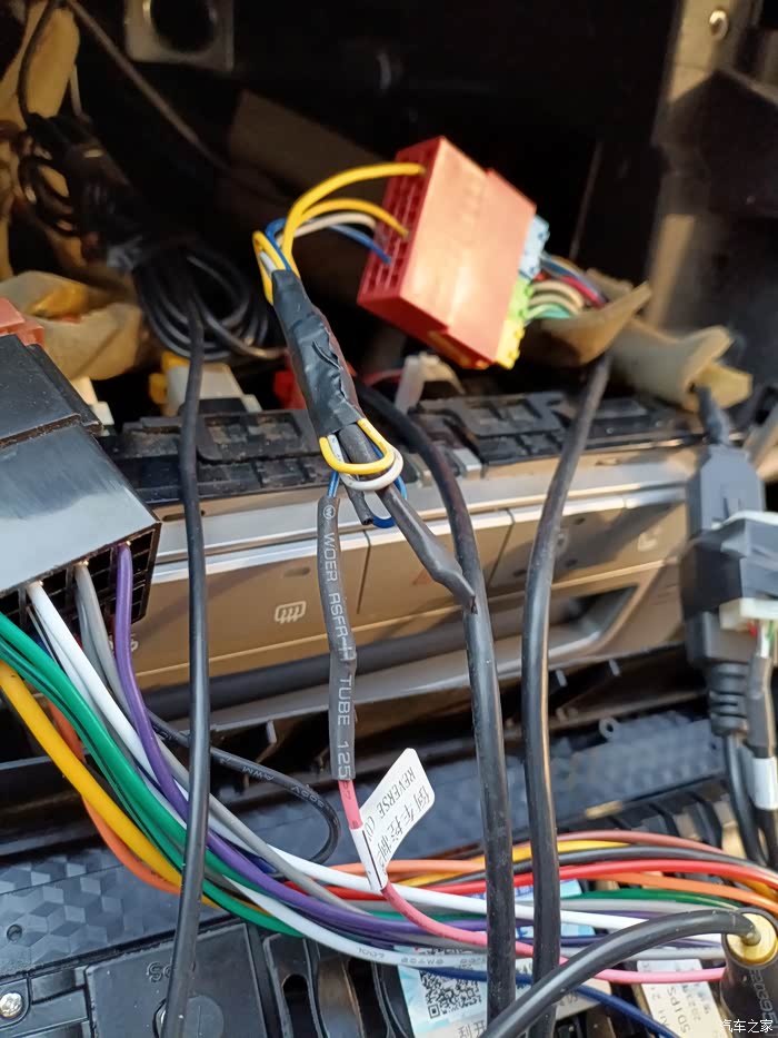 安卓大屏倒车视频插头我用一个莲花头转接了下,信号接原车红线,黑线接原车白线