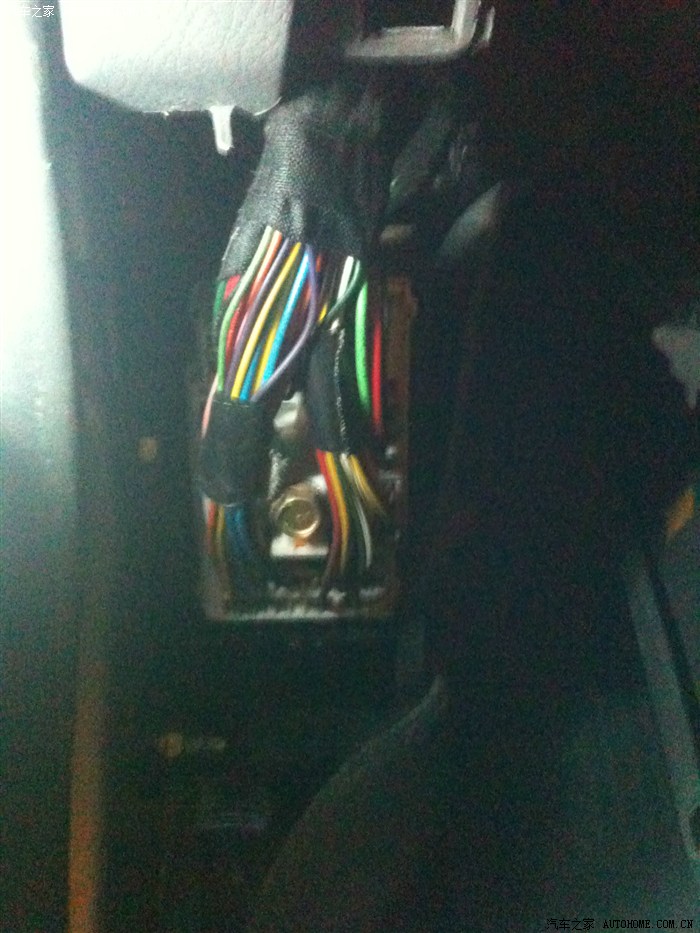 走线是在驾驶员左侧迎宾踏板下,这个号拆,用力网上掰就行了,线束都走在地毡下面,中央扶手箱拆卸后,穿到副驾座椅下面也很容易。
