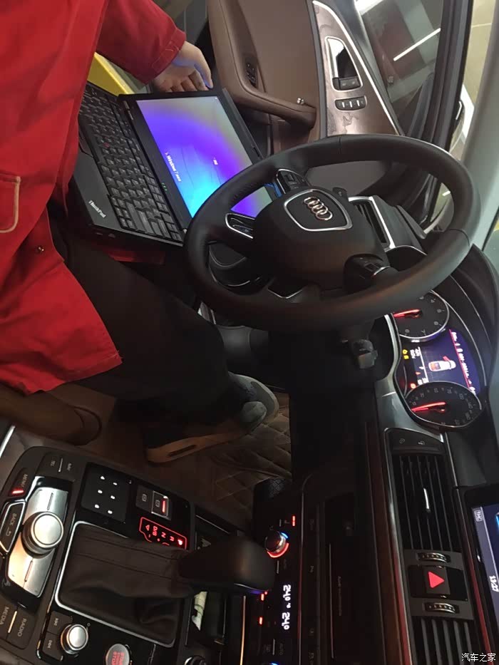 提车两个月了一直没有时间,没提车之前就想提车回来赶紧发帖,结果一直拖到现在。喜欢A6已经好多年了,没事就网上看它,导致有一段时间对它产生了审美疲劳,到真想买车的时候了还是是放不下它,所以没有选车篇。之前一直考虑45TFSI那款车,性价比高就是感觉配置有点低,听说17款上市,多了全景天窗、舒适进入、还有手机接口,刚好手头也紧正好等17款吧。等17款45TFSI到店赶紧去看车,外表都差不多,打开车门结果还是没有想得到它的那种欲望,店里正好有台16款50TFSI豪华黑外黑内多了岑木内饰、矩阵大灯、BOSE音响、座椅记忆、后排多媒体、空气悬挂、高功率发动机,真皮座椅区别最明显用料跟外形都不一样。但是价格超预算再就是黑内不喜欢(前几年一直喜欢黑内,也许是年龄大了,现在不喜欢了),回家以后一直纠结45还是50,最后家里人建议买就买个自己喜欢的,果断50豪华,但是黑内也喜欢,然后就给省内4S打电话,50豪华车源很少,黑外棕内的更少,最后淄博有一辆17款50豪华黑外棕内。赶紧过去看车,到店中午销售安排吃饭,吃完饭看车,看完车借钱,钱到账刷卡,洗车,撕膜,买保险,买完保险天都黑了,没有交车仪式直接回家!价格不太理想,17款又加上是年底所以优惠少。不多说了都等急了吧?图不是一次拍的,没事的时候就拍几张,今天打算发帖特意洗车找个光线好的地方拍了几张。